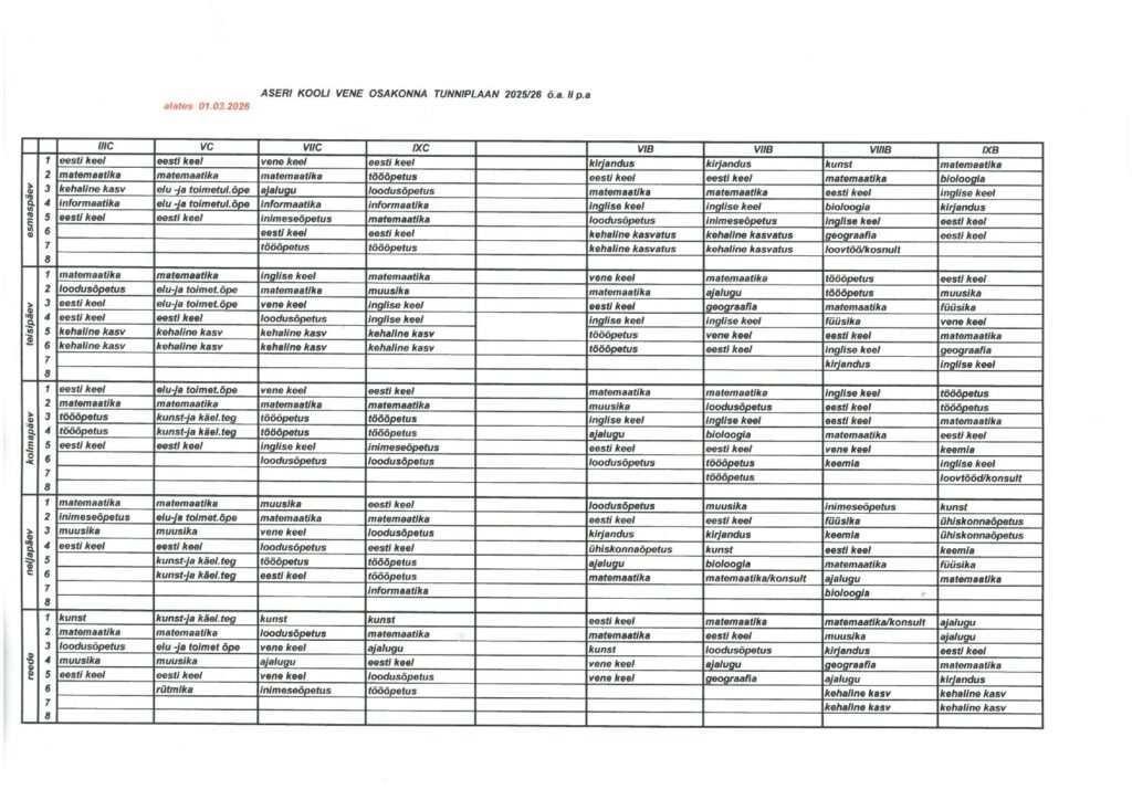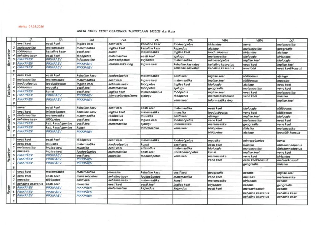 • Tunniplaan
